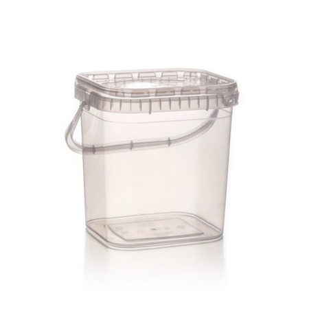 • Cubo rectangular de plástico transparente.