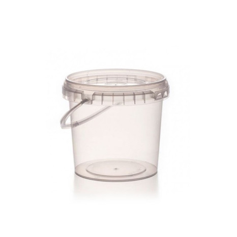 - Cubo redondo de plástico transparente.