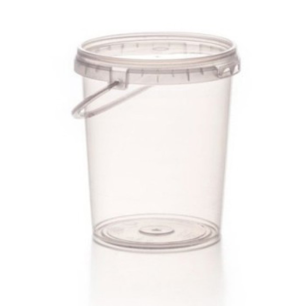 • Tarrina redonda con asa de plástico transparente.